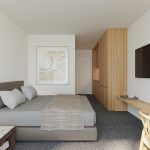 Com cerca de 7.000 m² de área bruta de construção, o aparthotel Broadway contempla ainda 2 pisos subterrâneos destinados a estacionamento, com capacidade para 50 lugares.